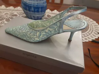 Zapatos de tacón fino talla 37 con 1 puesta en una boda,prácticamente nuevos!