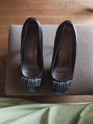 Zapatos piel negros,talla 37, tacón bajo. No negociable, no envío.
