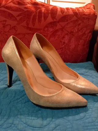 Zapatos de fiesta tacón aguja beige dorados 36/37