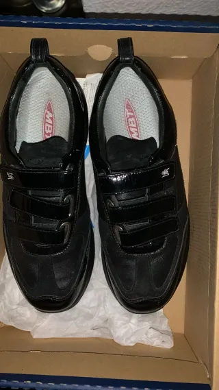 Zapatos de mujer de la marca MBT en color negro. - Cierre de velcro. - Detalle brillante en la pala. - Logo de la marca en la plantilla.Escucho ofertas