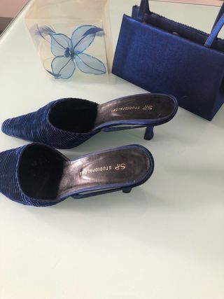 zapatos, bolso y tocado en azul muy elegante para boda, los zapatos talla 39 todo en perfecto estado