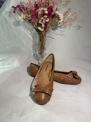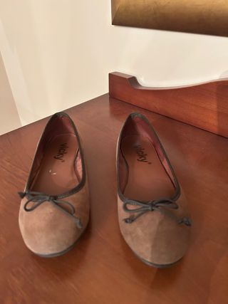 Elegantes bailarinas de la marca Vicky. - Material exterior de ante. - Detalle de lazo en la punta. - Ribete en contraste.