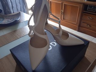 Zapatos de novia , muy cómodos y poco tacón, sientan y se ven muy bien, estan usados un día , prácticamente nuevos