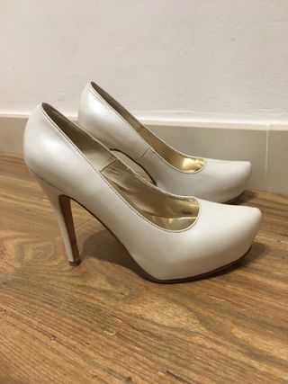 Zapatos de novia de piel auténtica de tacón. Usados una sola vez en mi boda. Perfecto estado.