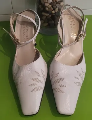 Zapatos de piel blancos tacon Zubiri Otazua