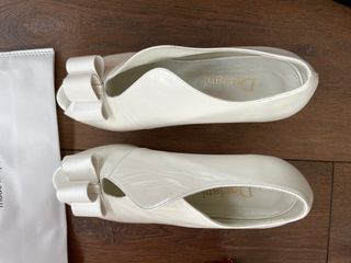 Zapatos blancos con lazo . Ponen 37 pero son como un 38 . Se usaron como zapatos de novia ,solo ese día .
