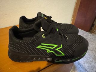 Zapatos de seguridad Cofra en talla 42. Diseñados para ofrecer protección y comodidad. - Con puntera y suela reforzada. - Material exterior de malla transpirable. - Cordones de ajuste en color verde. - Suela de goma resistente. - Se an usado en 4 o 5 ocasiones para entrar en los almacenes, soy chófer de camión, osea que no las he usado casi.