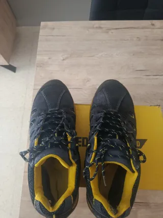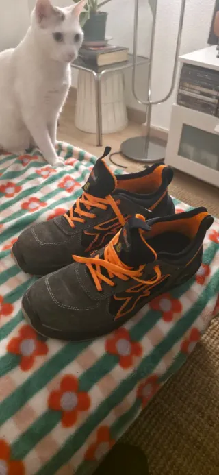 Zapatos de seguridad Diadora en excelente estado, casi nuevos. - Talla 44. - Combinación de colores beige y amarillo. - Diseño moderno y funcional.