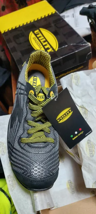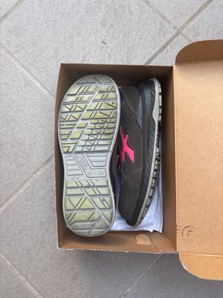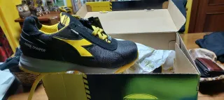 Calzado de seguridad Diadora en tonos grises con detalles amarillos. Nuevos valen 120€. Sistema de ventilación integrado.