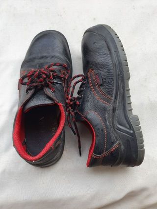 Calzado de seguridad de cuero. - Cierre con cordones. - Suela de goma resistente.