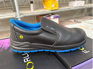 Zapato Carbon ESD Carbon 290 Negro/Azul Precio nuevas 115€. Puntera de fibra de carbono ultra ligera (protección pero sin peso metálico). Plantilla antiperforación Modyflex en PET 100% reciclado, fresca y flexible. Parte superior textil con refuerzos en TPU para resistencia. • Suela en EVA antideslizante (SRC) con inserciones de goma para agarre y resistencia al deslizamiento. • Sin partes metálicas (metal-free), ideal para entornos con detectores de metales. • Aprox. 340 g por zapato (talla 42), muy ligero comparado con calzado tradicional. • Clase ESD: descarga y disipación controlada de cargas electrostáticas, útil en electrón