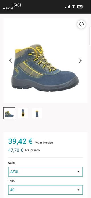 Botas de seguridad panter, son altas, en talla 40. Están completamente nuevas, no se han ni probado, se pidieron por error. Entre zapatos envio etc fueron casi 60€. Ya compre mi talla y son muy comodos, no pesan nada y protegen mucho, incluso las plantillas son muy comodas... Las tengo preparadas y embaladas para enviar, seria en el mismo dia de la compra a traves de wallapop.