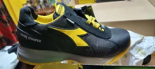 Zapatos de seguridad Diadora con un diseño moderno y llamativo. - Combinación de colores negro y amarillo. - Detalle de MASS DAMPER en el lateral. - Etiqueta UTILITY DIADORA en la lengüeta. - Tejido MATRYX en el empeine.