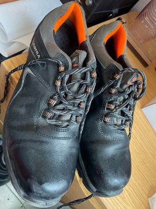 Zapatos de seguridad en perfecto estado, casi sin uso. - Diseño moderno y resistente. - Cierre con cordones. - Suela antideslizante.