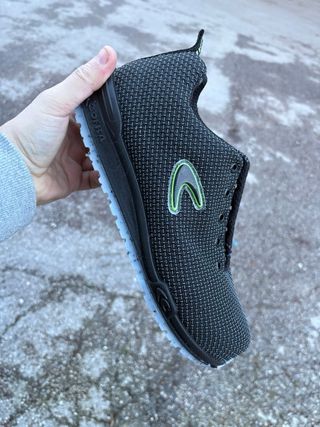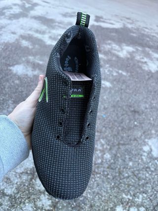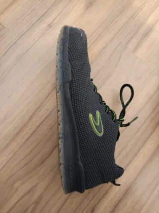 Zapato de seguridad con un diseño moderno y detalles en verde. - Material exterior de malla transpirable. - Suela de goma antideslizante. - Puntera reforzada para mayor protección. - Cierre de cordones. - nuevos a estrenar, por no poder cambiar