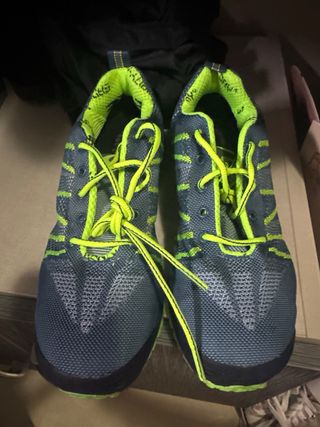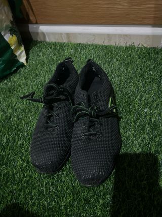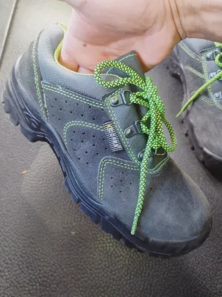 Zapatos de seguridad Cofra en talla 42. Diseñados para ofrecer protección y comodidad. - Con puntera y suela reforzada. - Material exterior de malla transpirable. - Cordones de ajuste en color verde. - Suela de goma resistente. - Se an usado en 4 o 5 ocasiones para entrar en los almacenes, soy chófer de camión, osea que no las he usado casi.