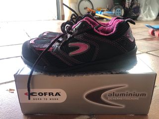 Zapatos de seguridad Cofra en talla 37. Diseñados para ofrecer protección y comodidad. precio no negociable - Combinación de colores negro y rosa. - Materiales resistentes para el trabajo.