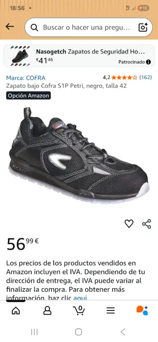 Zapato de seguridad, marca cofra, número 46, poco usadas.
