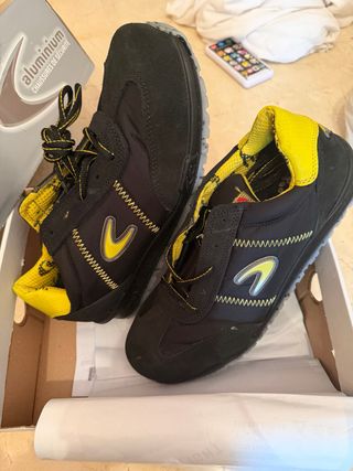Zapatos de seguridad Cofra en talla 40 totalmente a estrenar. Diseñados para ofrecer protección y comodidad. - Combinación de colores negro y amarillo. - Materiales resistentes para el trabajo.