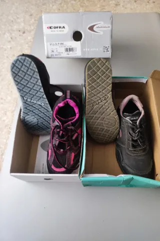 Zapatos de seguridad de la marca Cofra.Los zapatos de color rosa son nuevos y los otros están en buen estado. - Color negro y rosa. - Talla 36.