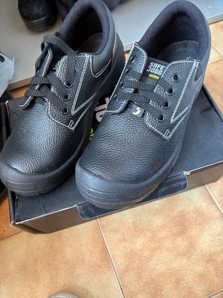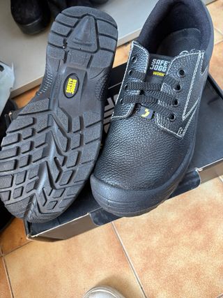Zapatos de seguridad de la marca Robusta. - Completamente nuevas,sin estrenar. - Talla 35. - Puntera de acero resistente a 200J - Piel auténtica de vacuno. -Suela de poliuretano de doble densidad antideslizante y antiestática. - Forro transpirable, plantilla ergonómica y gran capacidad de amortiguación. - Máxima comodidad y seguridad en entornos laborales exigentes.