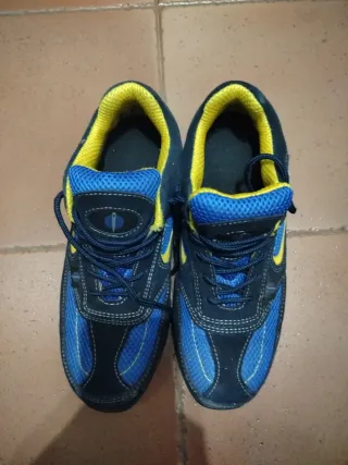 Zapatos de trabajo con un diseño moderno y cómodo. Puntera de seguridad - Combinación de colores azul y amarillo. - Materiales resistentes para el uso diario.