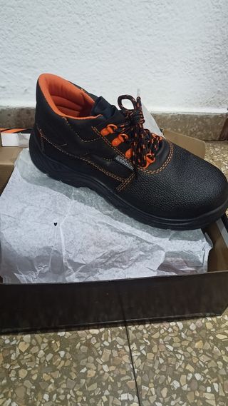 Calzado seguridad con punta de acero. Unisex MATERIAL: piel de flor de vacuno con suela anti perforación. La parte superior de fibra de vidrio. Resistencia a líquidos. RESISTENCIA AL APLASTAMIENTO : 200 J TIEMPO DE USO: Se usaron solo una vez durante 4 horas RAZON DE VENTA: No es lo que estaba buscando. PRECIO EN MERCADO NUEVOS: 40€-45€
