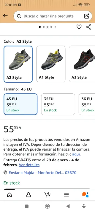 Tienen un uso muy ligero, la suela no presenta nada de desgaste. Son antideslizante, pero en suelos muy pulidos no tienen mucho agarre. Tienen la punta de acero y no pesan en absoluto, son muy comodos. La talla es un 37.5 - 38. En amazon estan por 49.99€