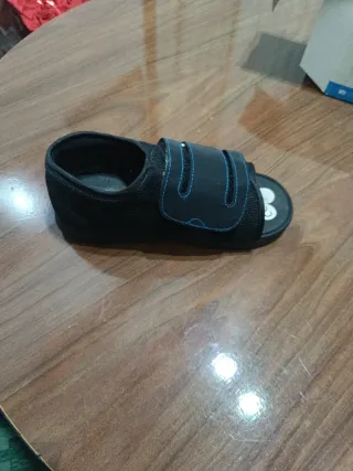 Zapato postquirúrgico de color negro. Cuenta con cierre de velcro para un ajuste seguro. - Cierre de velcro. - Suela antideslizante. - Diseño abierto en la punta. - Certificación CE.