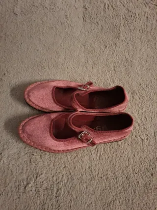 Manoletinas de terciopelo en color rosa/granate. Cuentan con una tira y hebilla para un ajuste seguro. - Material: Terciopelo - Cierre: Tira con hebilla - Diseño: Mary Jane