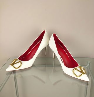 Tacones Valentino Garavani para mujer en color blanco, diseño elegante y sofisticado con acabado premium en piel de alta calidad. Modelo icónico con puntera fina y distintivo logo V dorado en la parte frontal que aporta exclusividad y estilo. Interior en color rojo característico de la firma y tacón fino que estiliza la figura. Perfectos para eventos, ocasiones especiales o colección. 📏 Talla: 38 📦 Incluye: Tacones y presentación original 🆕 Estado: Nuevos, sin uso 🚚 Envíos rápidos y protegidos. Vendedor profesional, compra segura y atención seria. #valentino #valentinogaravani #tacones #zapatosmujer #luxury #moda #premium