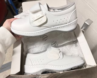 Zapatos de trabajo de la marca Dian en color blanco. Nuevo a Estrenar. Cuentan con cierre de velcro para un ajuste cómodo y seguro. - Diseño clásico y funcional. - Materiales de calidad para mayor durabilidad. - Suela antideslizante para mayor seguridad. Precio no negociable ni cambio. Realizo envió. Residencia Limpieza Conserje Hospital clínica