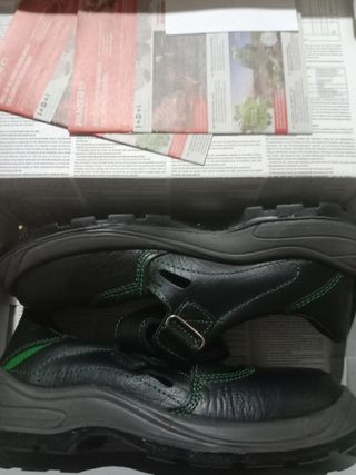 Sandalias de seguridad Panter en color negro. Perfectas para el trabajo también tengo zapatos y botas todo de la talla 44. Sin usar - Cierre de velcro. - Suela antideslizante. - Fabricadas en España.