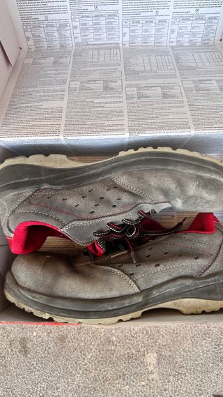 Zapato de seguridad muy transpirable,fabricado en piel serraje 1°calidad transpirable y fresco tejido Mesh con tratamiento hidrofugo con tecnología Panter Oxígeno Ligero, flexible le u extramadamente antideslizante,máxima protección puntera resistente a Impactos. Plantilla térmico formada en tejido coolmax Resistencia y durabilidad Talla 46 Excelente estado