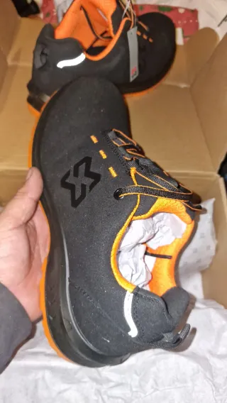 Zapatos de seguridad Spiez en color negro y naranja. - Talla 46. -Están completamente nuevos unico inconveniente es que la caja está un poco rota -¡Trabaja sin fatiga! Con solo 230g y puntera compuesta (40% más ligera que el acero), estas zapatillas ofrecen protección total con entresuela de Kevlar antipinchazos. -Máxima Amortiguación: Suela Phylon de 1.45" para un soporte elástico superior. Frescura Total: Tejido Jaquart 2025 transpirable y duradero. -Estilo: Diseño moderno, reflectante y sin metal. -Con punta metálica