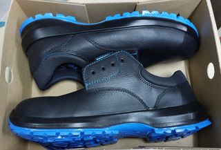 Zapatos de seguridad Safetoe de color azul, talla 41. Cuentan con resistencia a la perforación no metálica. - Transpirables. - Cierre con cordones. - Suela de goma. Sin estrenar, se venden por cambio de trabajo