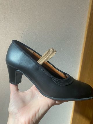 Zapatos de flamenca para niña, usados una sola vez. - Diseño clásico y elegante. - Cierre con hebilla para un ajuste seguro. - Suela interior con detalle de marca y talla.