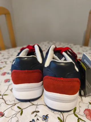 Zapatos de seguridad de la marca Paredes, con un diseño moderno y llamativo. - Combinación de azul marino y detalles en rojo. - Materiales resistentes para mayor durabilidad. - Cierre con cordones para un ajuste seguro. -Unisex