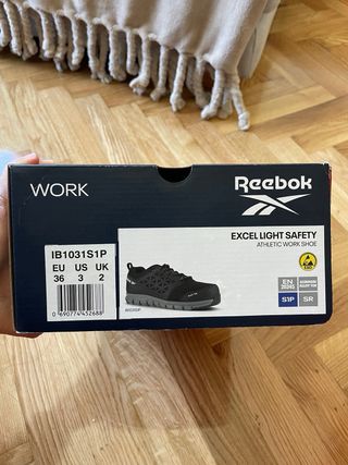Zapatos de seguridad Reebok con un diseño moderno y detalles en color turquesa. - Parte superior de malla transpirable. - Cierre de cordones. - Suela con agarre.