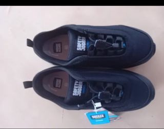Zapatos de seguridad negros, ideales para el trabajo. - Diseño cómodo y resistente. - Suela antideslizante para mayor tracción. - Cierre de cordones. - Logo de la marca en el lateral.