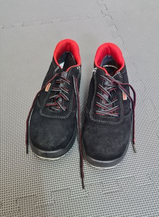 NO Negociable. Sin estrenar. Caracteristicas. Zapato S3 de seguridad de piel de ante, hidrorepelente. EN ISO 20345: 2011 - Puntera de composite y plantilla textil anti-perforación. - Libre de metales y antiestático. - Su comodidad y ligereza se dan gracias a la suela de doble densidad EVA +goma. - Plantilla Max Comfort con estructura de nido de abeja. - SRC (antideslizante sobre suelo de cerámica y acero), HRO (resistente hasta 300º C).