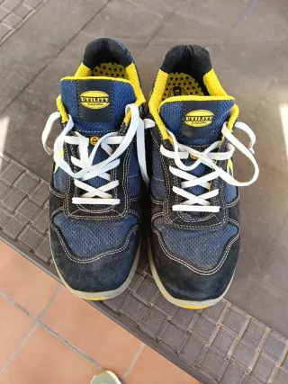 Calzado de seguridad marca Diadora. - Diseño en color azul y amarillo. - Cierre con cordones blancos.