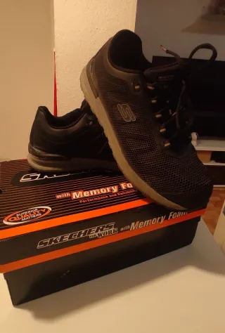Zapatos deportivos Skechers para el trabajo con plantilla Memory Foam. - Color negro. - Puntera de seguridad. - Diseño transpirable.
