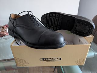 Zapatos de seguridad Canguro, nuevos a estrenar, nunca han sido usados, yo calzo un 43 con 27cm de pie y me quedan perfectos. Cumplen con la normativa EN ISO 20345 S3
