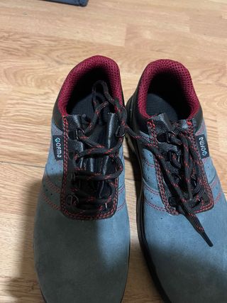 Vendo un par de zapatos de seguridad de piel de serraje. Son de color gris con detalles rojos de talla 41 - Piel de serraje. - Estilo deportivo. - Suela resistente. - Cómodos y ligeros.