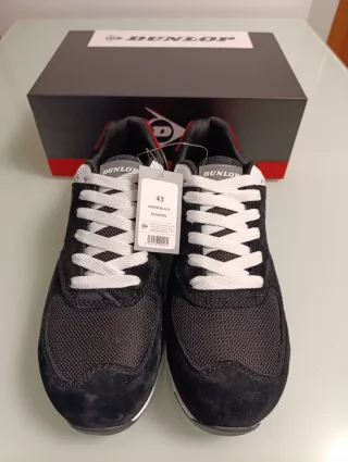 Calzado/zapatos de seguridad, Dunlop Arrow Black. - Diseño moderno con detalles en rojo. - Cierre con cordones blancos. - Suela de goma. - Logo de Dunlop en el lateral.