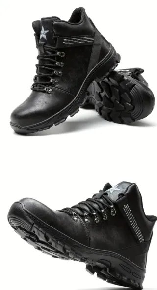Botas de seguridad para hombre, muy cómodas. - Cierre con cordones. - Diseño de caña alta. - Tira de ajuste en el tobillo.Malla transpirable superior:La parte superior de malla transpirable y duradera proporciona una transpirabilidad superior y un secado rápido. Puntera protectora de acero:Zapatillas con puntera de acero anatómicamente correctas para una puntera más amplia y un excelente soporte para el arco que acuna los contornos naturales del pie. Suela de Kevlar resistente a pinchazos: Los zapatos de trabajo con entresuela ligera de Kevlar están diseñados para proteger sus pies de ser perforados por objetos afilados como clav