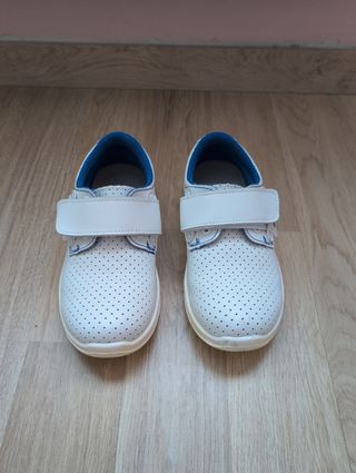 Vendo zapatos sanitarios de seguridad, en color blanco y azul. Son ideales para proteger los pies en entornos de trabajo o actividades que requieren seguridad. Perfectos para uso en enfermería, TCAE, medicina, limpieza, etc. Material resistente y fácil de limpiar. Con protección antideslizante en aceite y a corriente eléctrica. Usados un solo día.