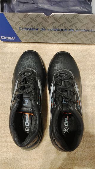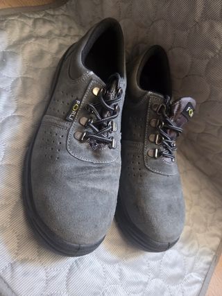 Vendo un par de zapatos de seguridad negros, talla 40. Son ideales para el trabajo o actividades al aire libre. - Diseño ligero y cómodo. - Material transpirable. - Suela resistente.