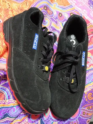 Calzado de seguridad Sparco en color negro. Solo se usaron unas horas.. - Cierre con cordones. - Detalle de logo en la lengüeta. - Diseño deportivo.